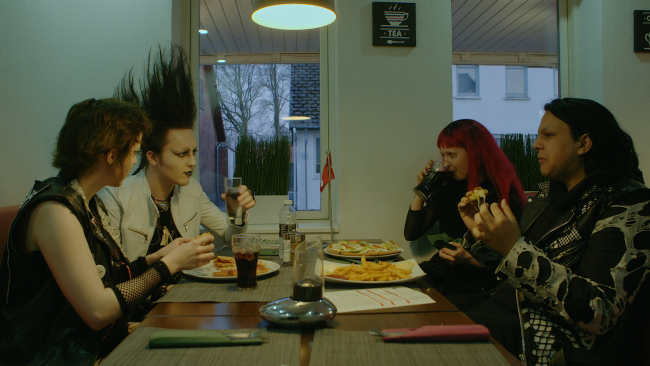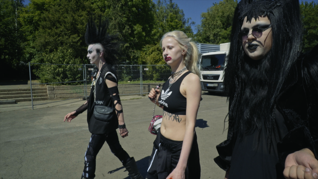 Josephine has colorful wigs, a large heavy nose ring and collects bones from road-kills. She is 20 years old and has never been part of the handball clique in the small town in Denmark where she grew up. Instead, in goth culture, she has found her two friends - the maximalist with the self-proclaimed name Mareridt and the reflective Christian, Jay. Armed with hefty makeup and wild outfits, the Gothic trinity fights to control their inner demons and together they create a free space where they can unfold undisturbed. But one day Josephine falls in love and as her black beating heart begins to beat for something other than darkness, their precious friendship is threatened.